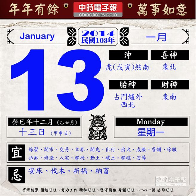 今日農民曆。(製圖/中時電子報) 旺旺好運來!